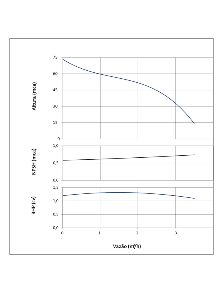 Vedação do Eixo – Por selo mecânico – Ø 5/8”, tipo “16”, construído com borracha nitrílica, mola de aço inoxidável, faces de vedação em grafite e Cerâmica. Temperatura de trabalho do líquido, até 80ºC.