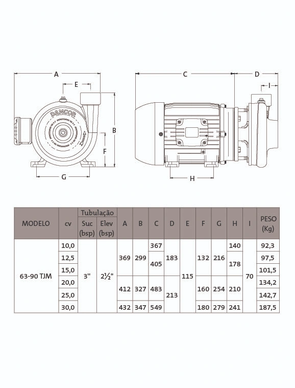 – 2 polos – 3.500 rpm – 60 Hz