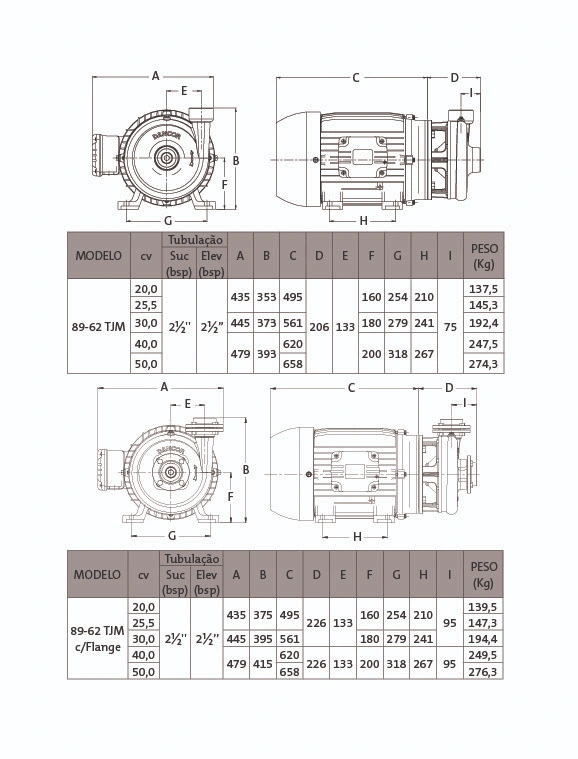 – 2 polos – 3.500 rpm – 60 Hz