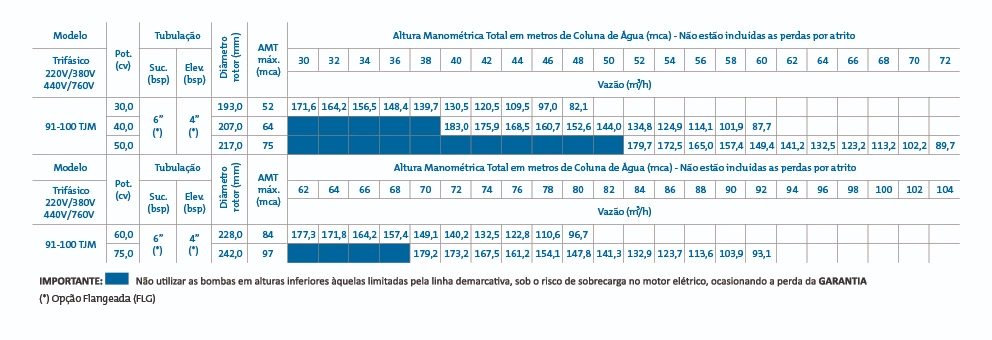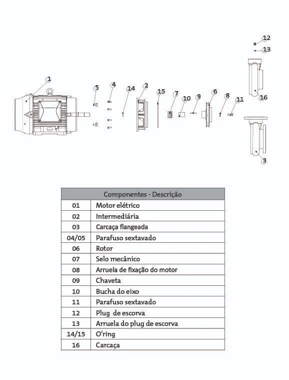 Selo mecânico: Em Viton. Nos casos em que haja a presença de abrasivos recomenda-se o uso do selo de carbeto de silício.