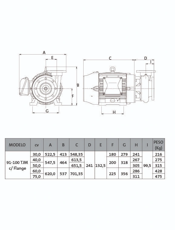 Carcaça, intermediária e rotor: Ferro fundido. Outros materiais sob consulta.