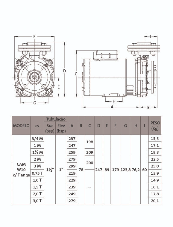 – Rotação: 2 polos – 3.500 rpm – 60 Hz