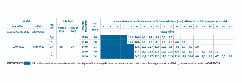 – Norma – Carcaça Nema 42, potência 3/4cv e 1cv monofásico; Carcaça Nema 56 nos demais modelos, todos com ponta de eixo” Jet Pump”.