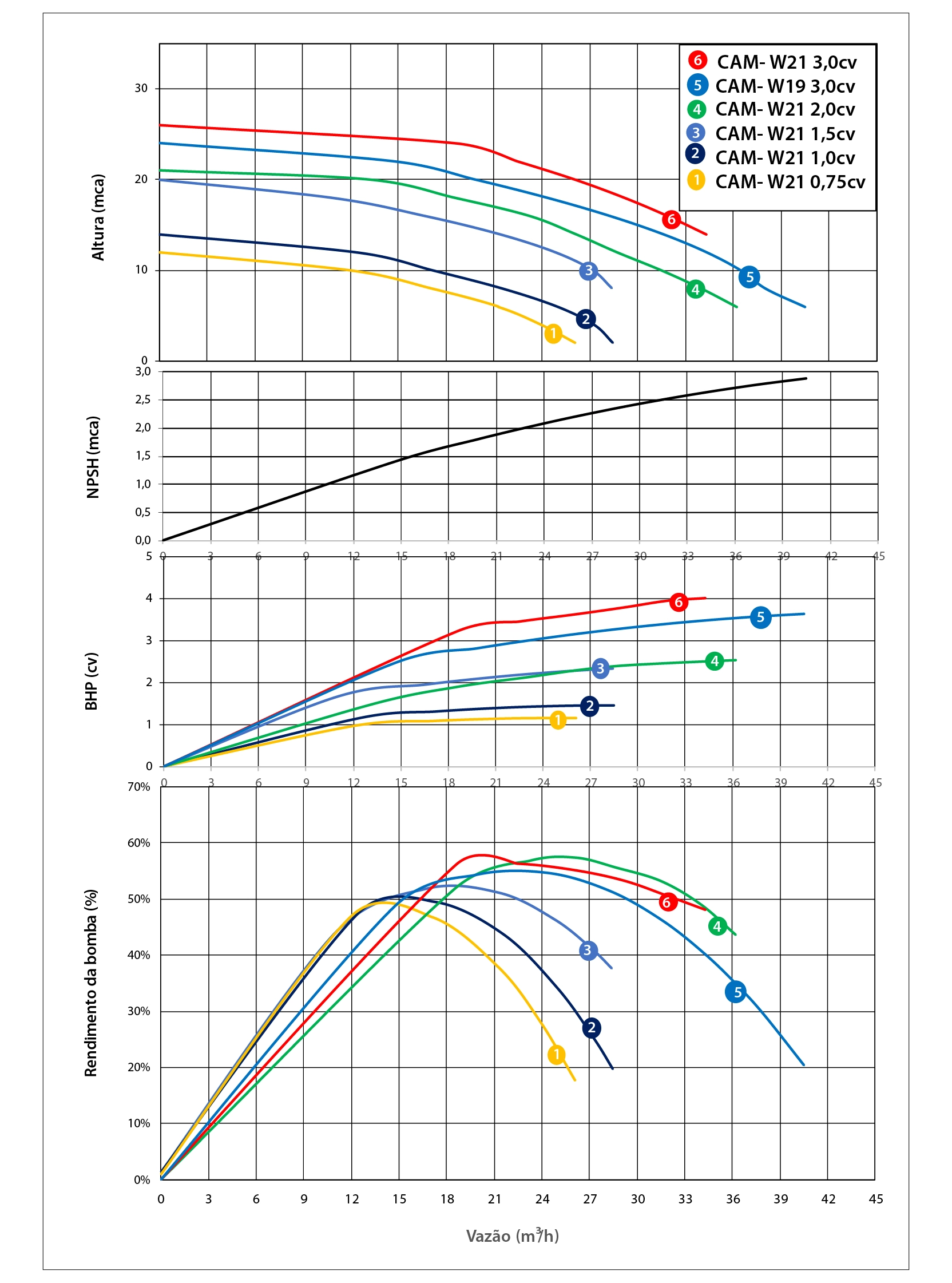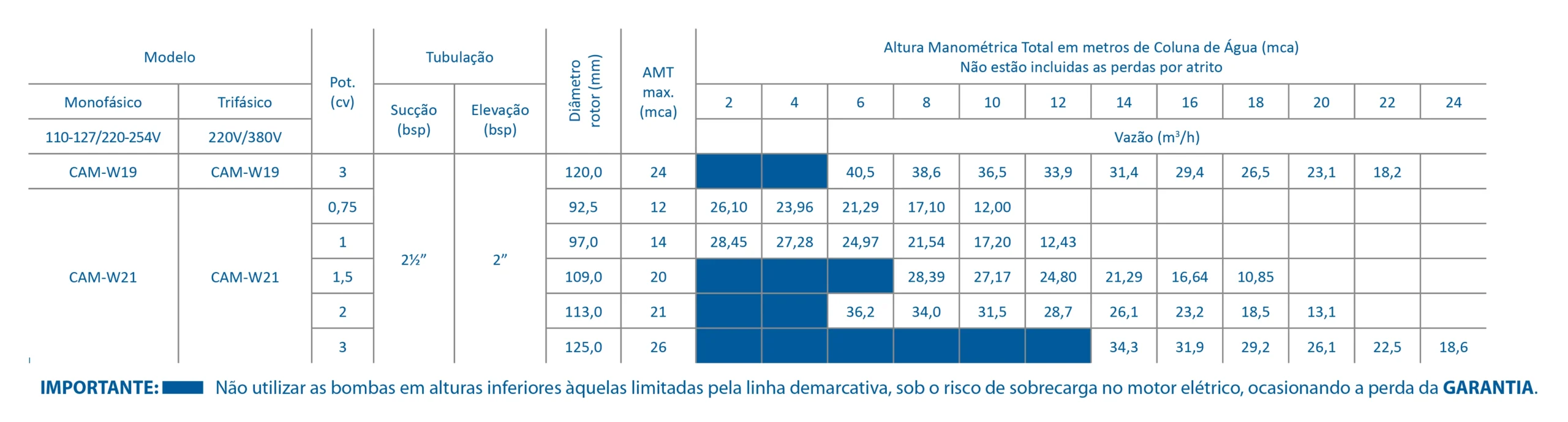 – Rotação: 2 polos – 3.500 rpm – 60 Hz
