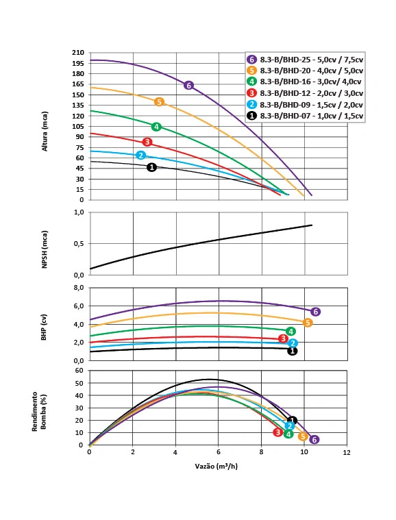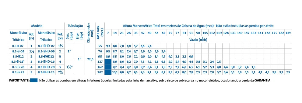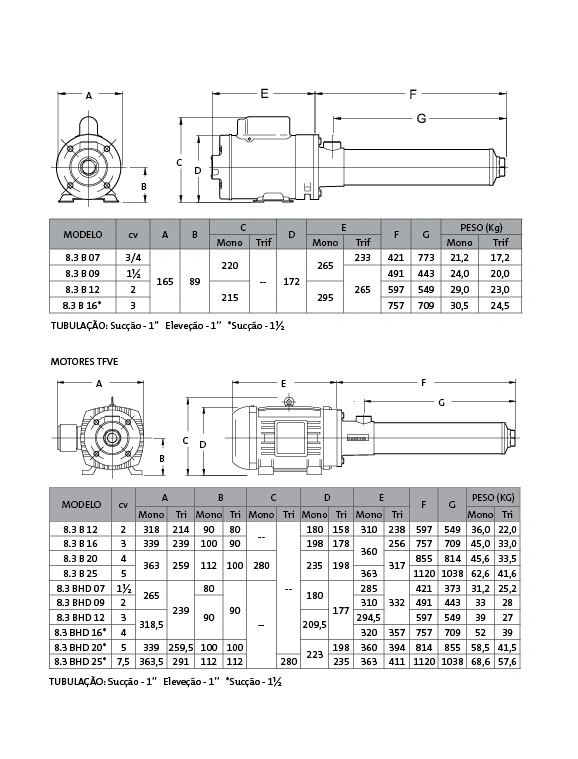 – Grau de proteção: IP 55 – nos modelos 8.3 BHD e e 8.3-B acima de 3,0cv