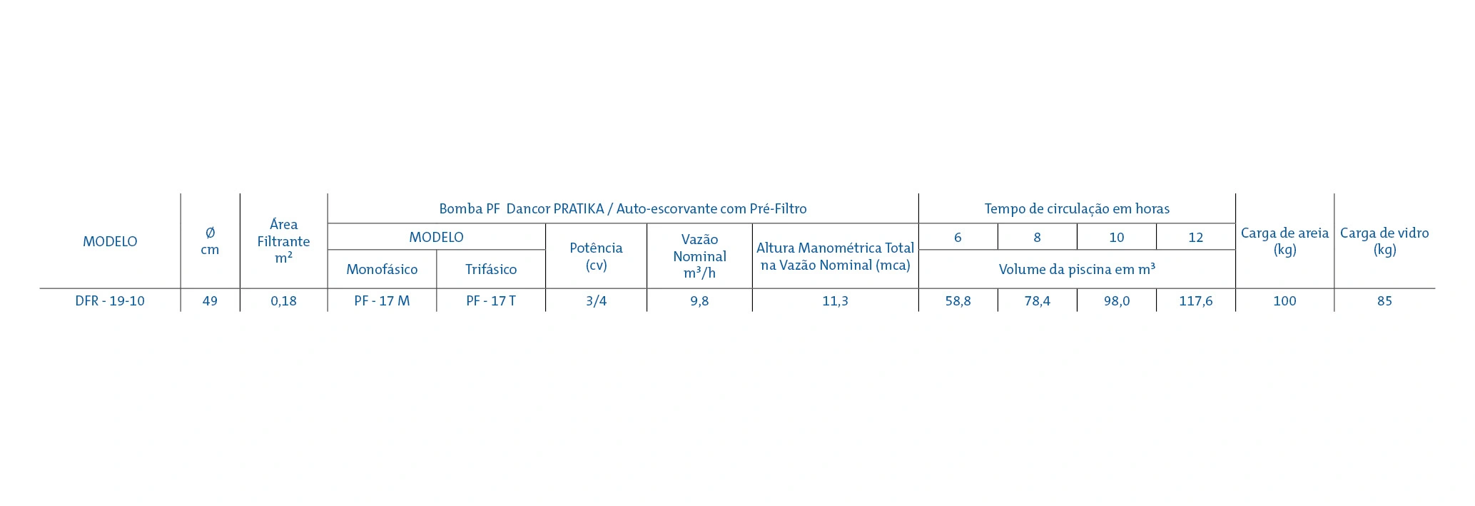 – Válvula seletora de 6 posições de operação, com manômetro de controle e visor de retrolavagem;