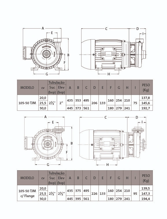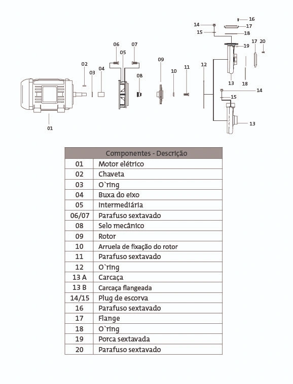 Carcaça, intermediária e flange – em ferro fundido.