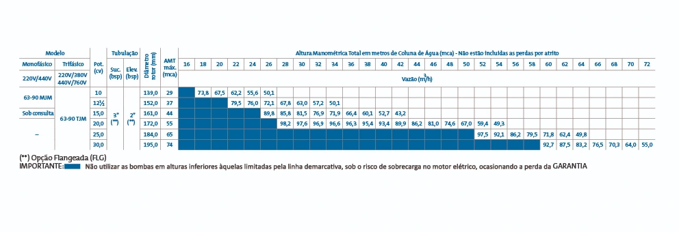 Selo mecânico: Em Viton. Nos casos em que haja a presença de abrasivos recomenda-se o uso do selo de carbeto de silício.