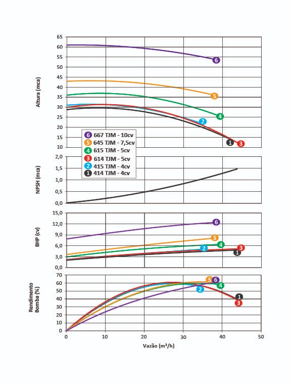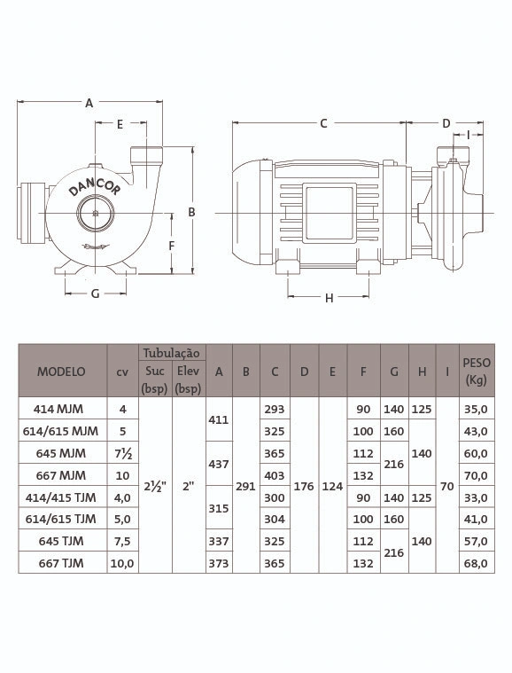 Rotor – do tipo fechado, construído em liga especial de alumínio-silício e fixadas por meio de chaveta, arruela e parafuso de fixação.