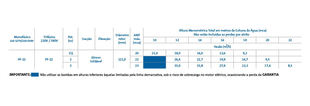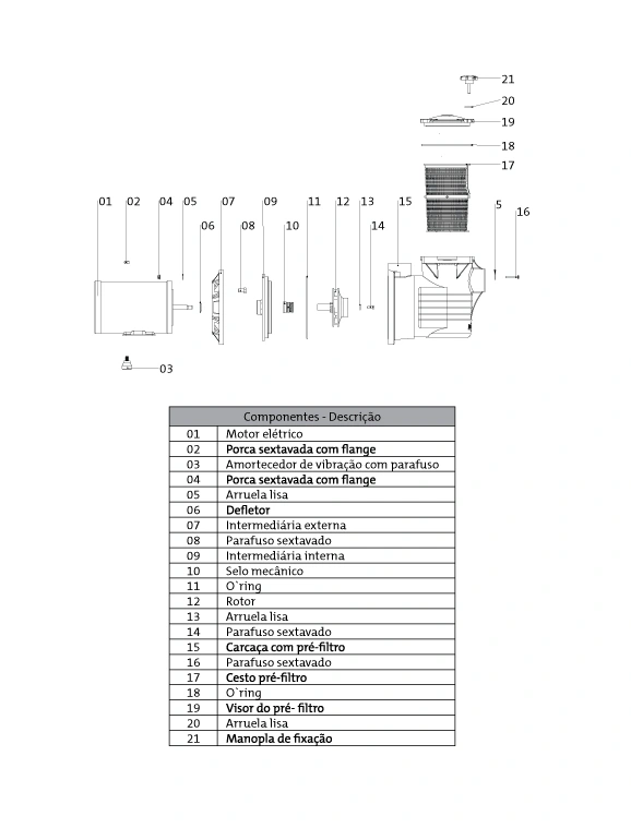 Selo mecânico: Em Viton. Nos casos em que haja a presença de abrasivos recomenda-se o uso do selo de carbeto de silício.