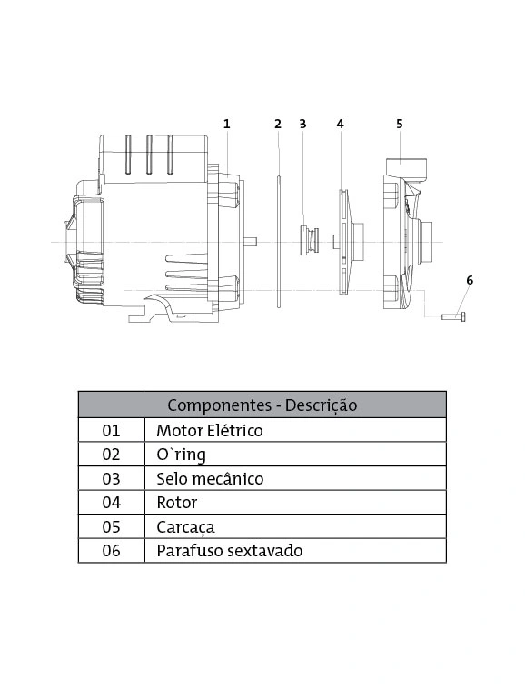Vedação do eixo – por selo mecânico 12mm tipo “04” – conjunto de precisão, construído com borracha nitrílica, mola de aço inox e faces de vedação em grafite e cerâmica.