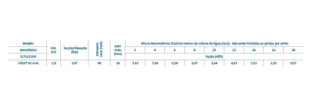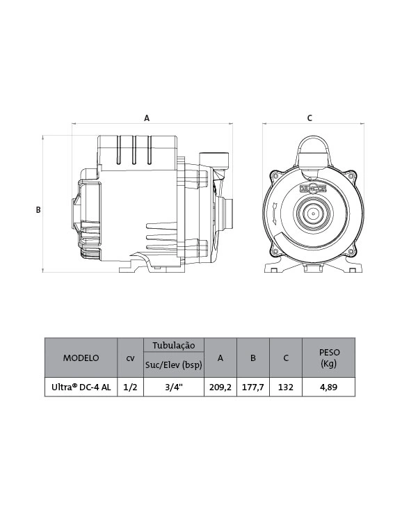 Carcaça – em Alumínio, não contaminam o líquido bombeado e resistem a determinados produtos químicos (CONSULTAR NOSSO DEPT° DE VENDAS).