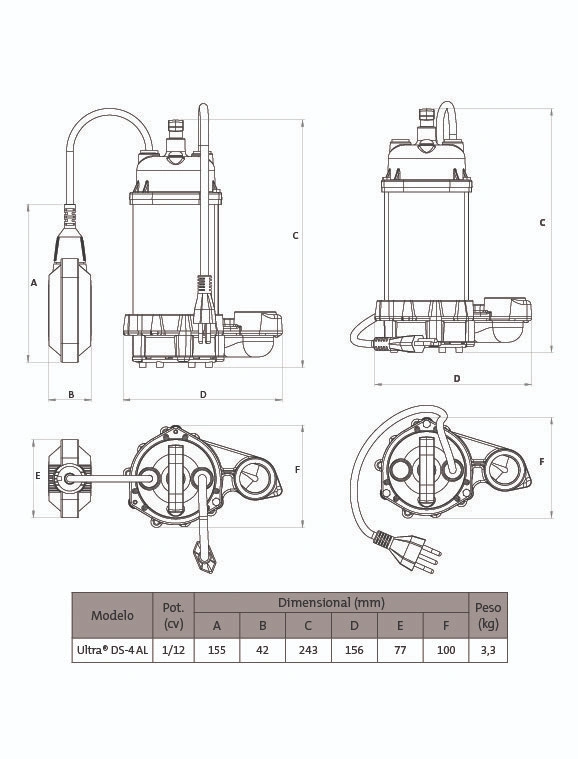 – Potência: 1/12cv
