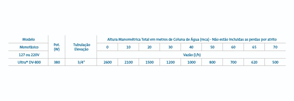 As bombas submersas Ultra® DV são ideais para bombeamento de água limpa de poços tubulares a partir de 8″, rios e cisternas. Temperatura máxima da água: 35ºC.