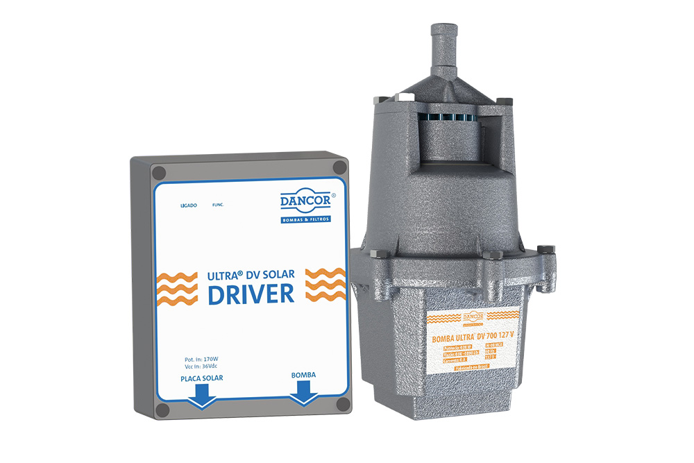 O Ultra® DV Solar Driver, foi projetado para acionar a bomba usando energia solar convertida em energia elétrica por uma placa fotovoltaica.